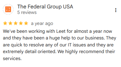 Leet services are the best. They are 100% responsive, very professional and are always able to assist me in meeting my needs. I highly recommend their services. We use them for our small business of around 50 staff. They provide IT support and emergency support as needed. We also had to have IT services set up for 15 youth during covid for school computer services. We have had no issues and always receive top notch service. I have lost documents and they have assisted with recovery.